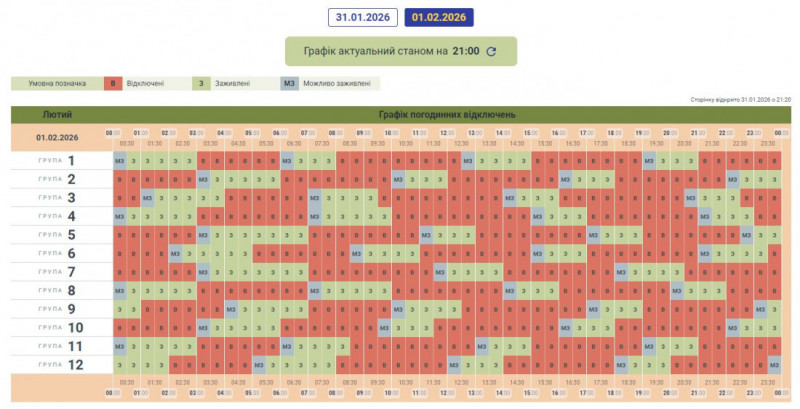 Графік може змінюватися залежно від оперативної ситуації в енергосистемі країни.