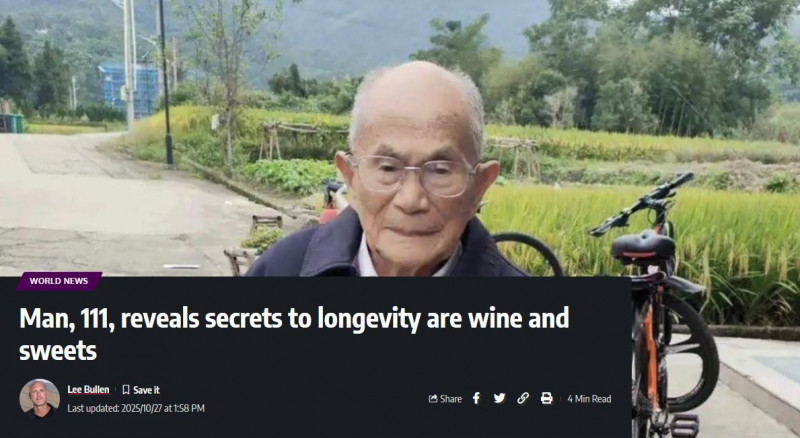 111-річний Чжан Чанченг із села Ваньяо, що на південь від Шанхаю, Китай, впевнений: секрет довгого життя — це келих вина і любов до солодкого.