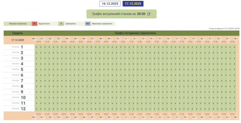 Графік може змінюватися залежно від оперативної ситуації в енергосистемі країни.