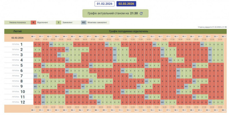 Графік може змінюватися залежно від оперативної ситуації в енергосистемі країни.