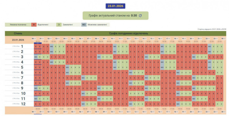 Графік може змінюватися залежно від оперативної ситуації в енергосистемі країни.