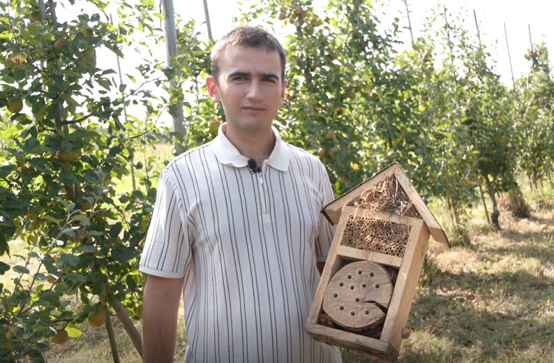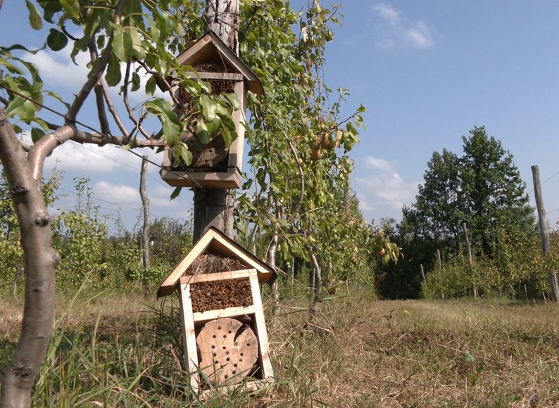 "Умовно, у груші сорту "Яблунівська" не досить хороший запах під час цвітіння. Він не приваблює бджіл. Ці дерева найбільше потребують диких запилювачів, а готель – один з варіантів, як можна цих диких запилювачів привабити, щоб вони постійно були в саду. Першочергово комахи все ж будуть летіти на те, що їх приваблює", — говорить Микола Ілащук.