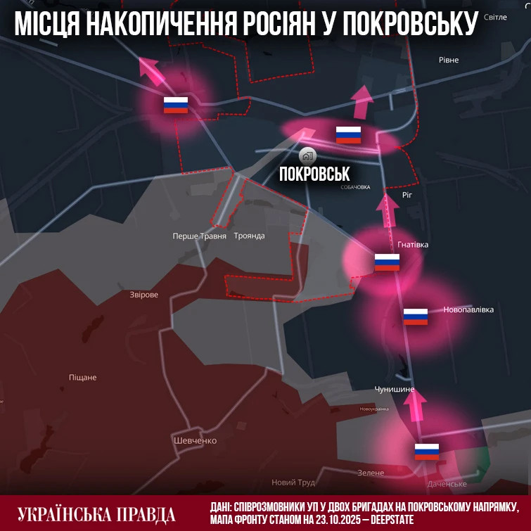 Після липневої зачистки росіяни повторно проникли в Покровськ у середині серпня. Відтоді вони створили кілька осередків накопичення сил у районі залізниці між Покровськом і Гришиним, а також по лінії Даченське—Новопавлівка—Гнатівка. Саме звідти окупанти здійснюють атаки на українські позиції у межах міста, цитує публікацію Фокус.