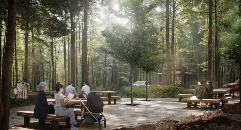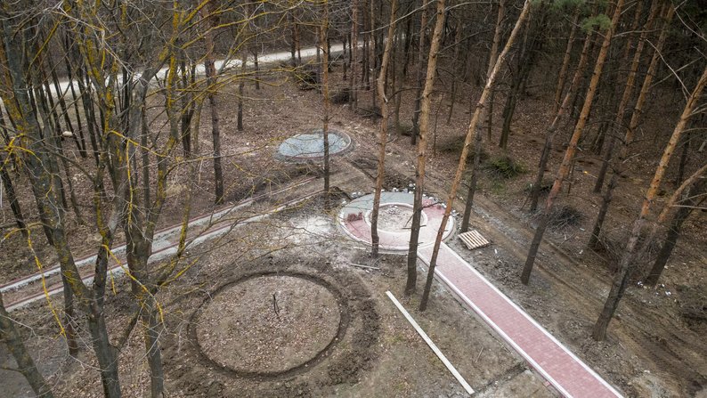 Територію розділили на три зони: торгові ряди біля дороги, центральна частина з парковкою та стежками — її зараз і будують — і рекреаційна зона в лісі з альтанками та барбекю.