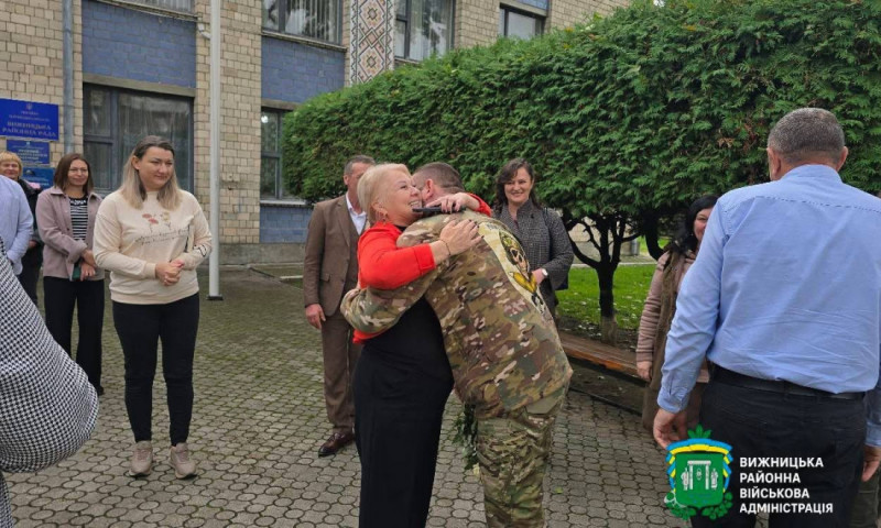 У місті Вижниця військовослужбовця зустріли представники місцевої влади, керівники правоохоронних органів, установ та організацій, аби подякувати йому за незламність, мужність та вірність Україні.