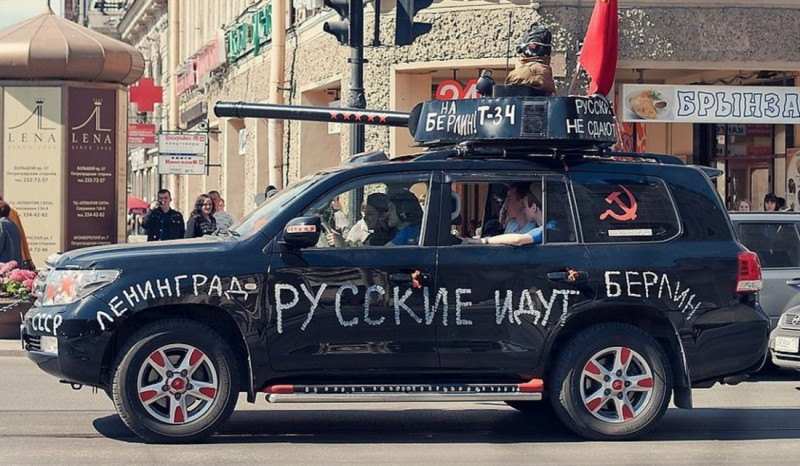 Підкорити Європу, щоб скористатися набутками її цивілізації. Бутафорія на відзначення перемоги над гітлерівською Німеччиною відтворює приховані амбіції росіян. Фото з відкритих джерел, зроблене в Санкт-Петербурзі