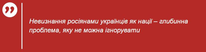 Невизнання українців як нації – це проблема, яку не можна ігнорувати. Вона глибинна, фундаментальна і тягнеться з часів СРСР. Нам про це навіть за незалежності кричали самі росіяни: від Жириновського до Собчака. Ми можемо ігнорувати це, стверджуючи, що нам нецікаво, що думають про нас росіяни. Це неправильно. Коли в середньо- або довгостроковій перспективі ми вийдемо на новий кривавий цикл нападу Росії на Україну, він розвиватиметься саме на цій настанові.