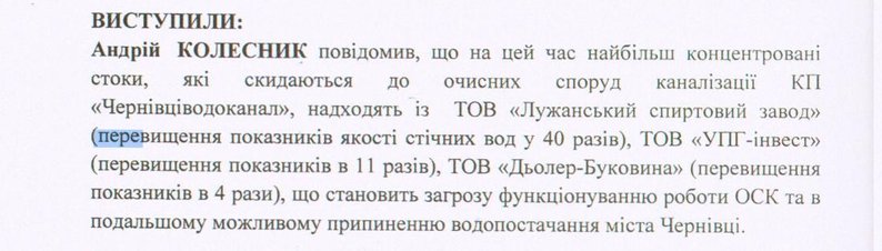 У той же день працівники водоканалу намагались взяти проби стічних вод кожного з підприємств. Це потрібно, щоб прийняти рішення, чи продовжувати договір. На територію Лужанського спиртзаводу працівників водоканалу не допустили, казав Сайковський.