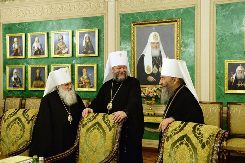 До слова, на одній із них Ви бачите митрополита Онуфрія із двома іншими митрополитами. Обидва – молдовани. Й обидва – постійні члени Синоду РПЦ: Вікетій Морарь (митрополит Середньоазійський) і Владімір Кантарян (митрополит Кишинівський і Молдовський). Вікентій не раз під час повномасштабної війни висловлювався у ЗМІ з героїзацією окупантів та із проголошенням цієї війни такою, в якій нібито росіяни обстоюють високі моральні цінності…