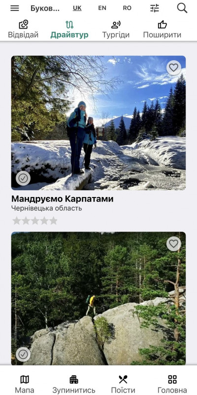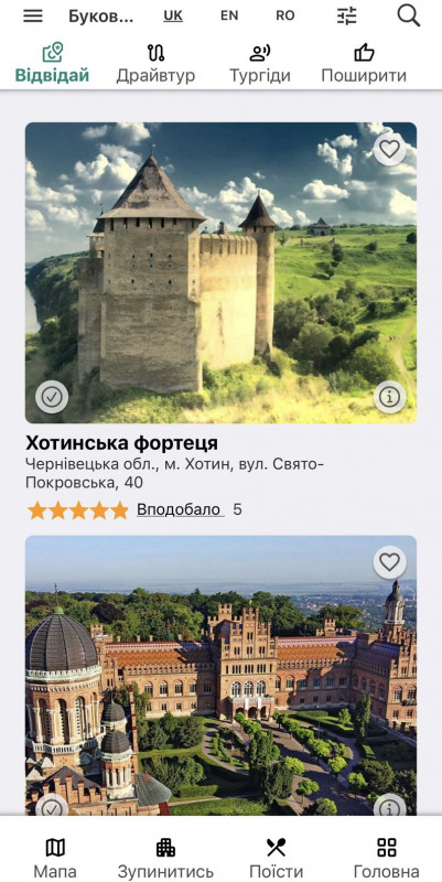 Вигляд додатку “Буковина Travel”. Суспільне Чернівці