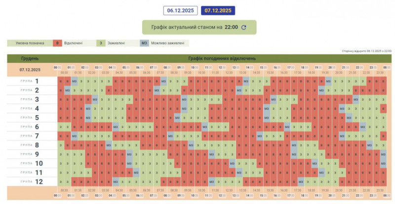 Графік може змінюватися залежно від оперативної ситуації в енергосистемі країни.
