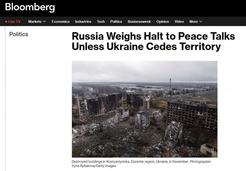 Росія розглядає можливість виходу з мирних переговорів за умови, якщо президент України Володимир Зеленський не піде на поступки та не виведе війська з підконтрольних Києву територій Донецької та Луганської областей.