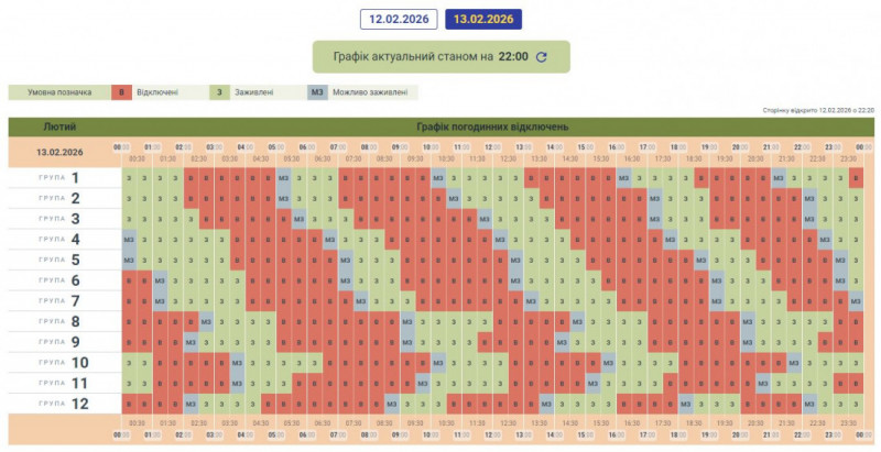 Графік може змінюватися залежно від оперативної ситуації в енергосистемі країни.