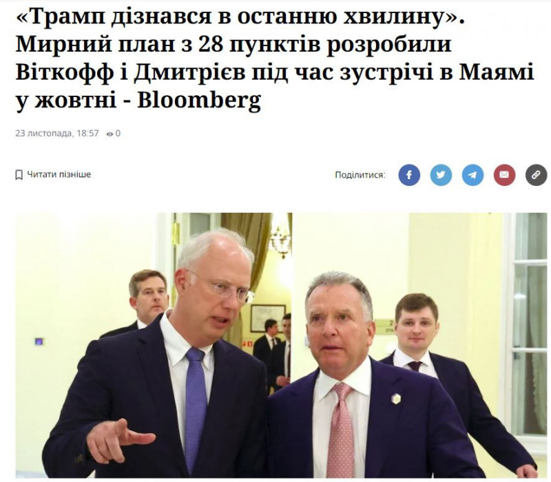 Вашингтон пост пише: «Трамп не заглиблювався в деталі «мирного плану» його адміністрації щодо України. У підрозділах Білого дому не знають, що відбувається».