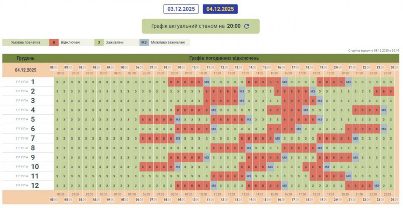 Графік може змінюватися залежно від оперативної ситуації в енергосистемі країни.