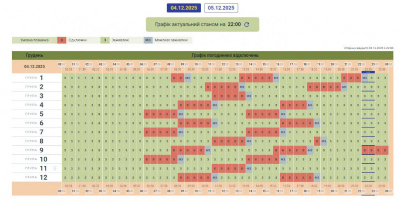 Графік може змінюватися залежно від оперативної ситуації в енергосистемі країни.