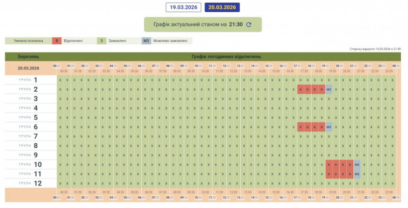 Графік може змінюватися залежно від оперативної ситуації в енергосистемі країни.