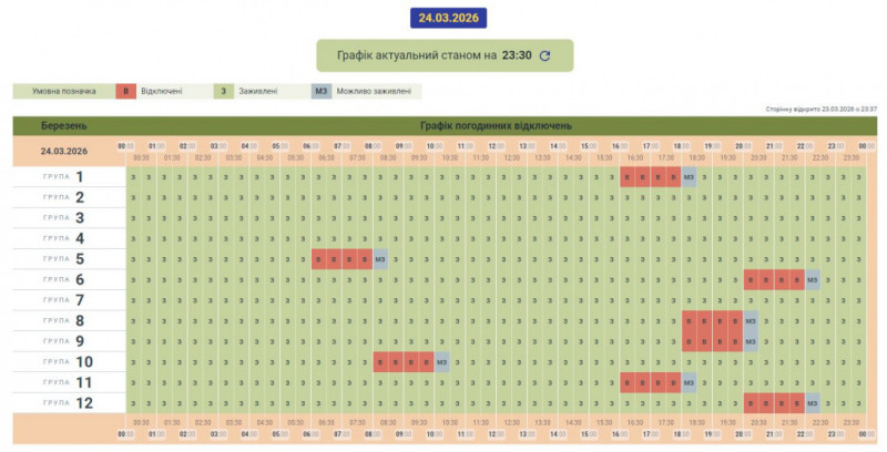 Графік може змінюватися залежно від оперативної ситуації в енергосистемі країни.