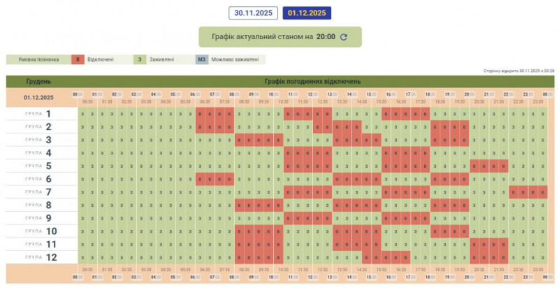 Графік може змінюватися залежно від оперативної ситуації в енергосистемі країни.