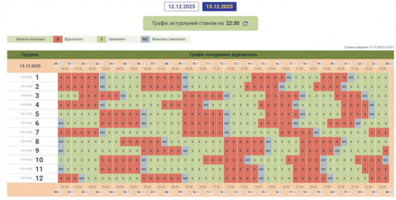 Графік може змінюватися залежно від оперативної ситуації в енергосистемі країни.