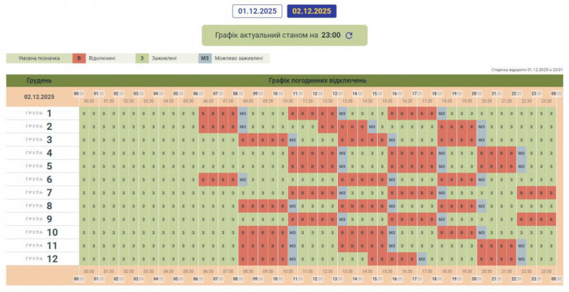 Графік може змінюватися залежно від оперативної ситуації в енергосистемі країни.