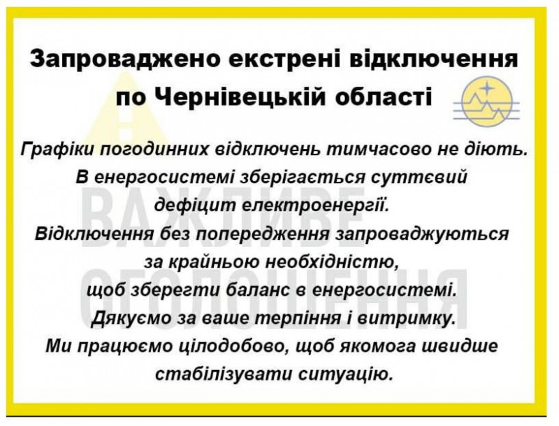 “Відключення без попередження запроваджуються за крайньою необхідністю, щоб зберегти енергосистему від значних технологічних руйнувань”, – йдеться в дописі.