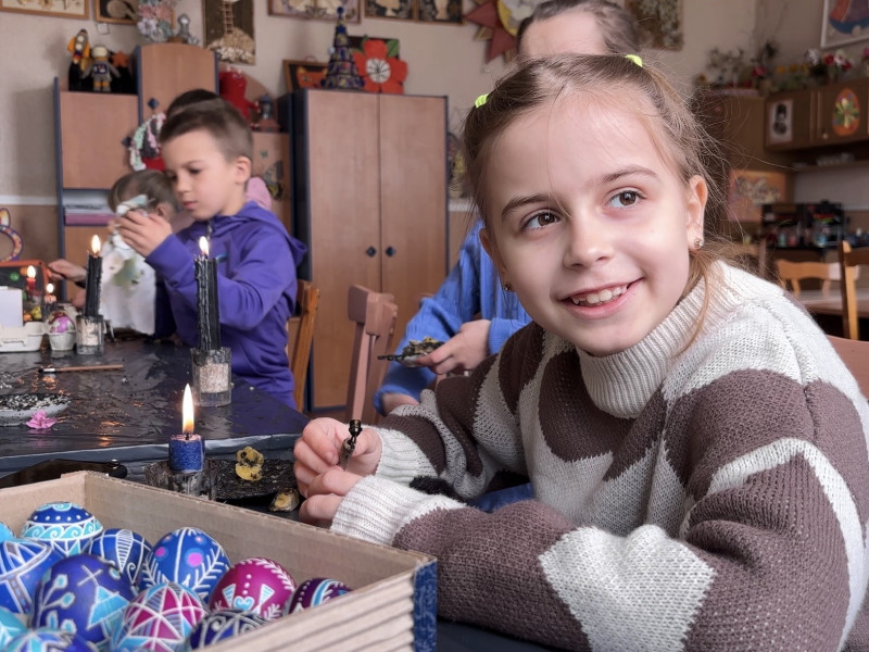Оленка, вихованка гуртка писанкарства у Новодністровську. Суспільне Чернівці
