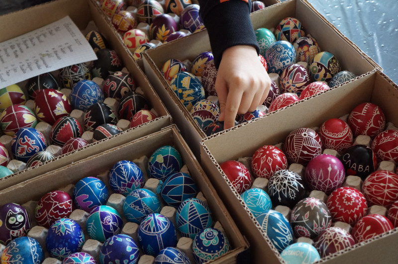 Колекція писанок у гуртку писанкарства Новодністровська. Суспільне Чернівці