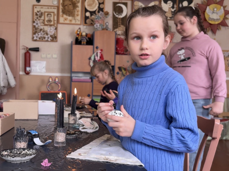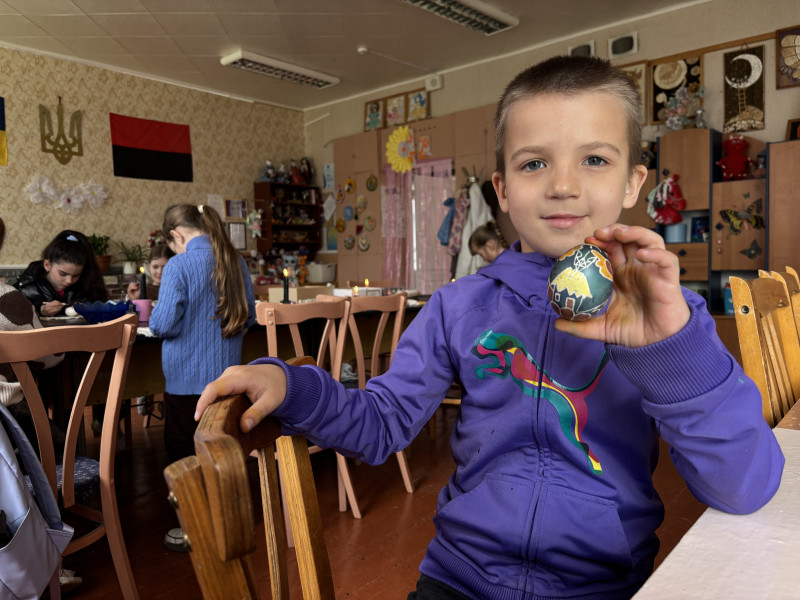 "Це мій улюблений гурток. Я його дуже люблю, бо тут багато діток і дуже багато яєчок. Я люблю багато яєчок робити. Коли я малюю складні, то мене це заспокоює".