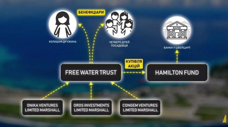 Щоб приховати участь колишнього міністра, на Маршалових Островах створили три компанії, бенефіціарами яких оформили колишню дружину та чотирьох дітей Галущенка. Зазначається, що ці компанії стали “інвесторами” фонду і перераховували кошти на рахунки у трьох швейцарських банках.