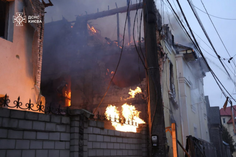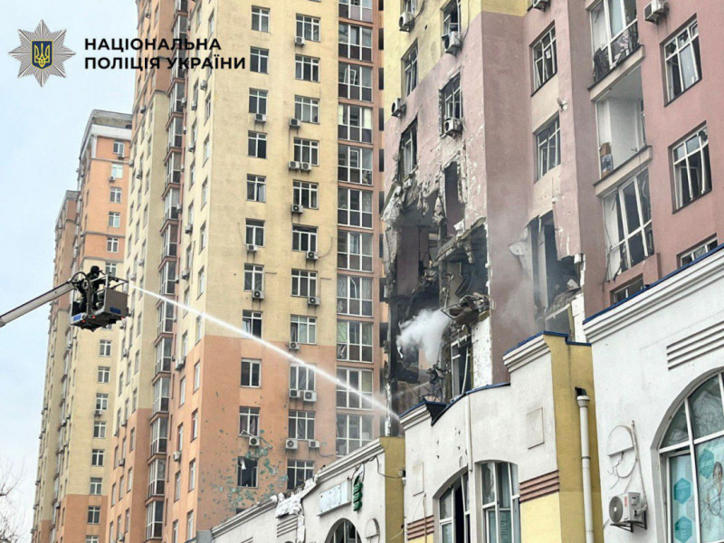 Зеленський заявив, що є влучання та пошкоджені звичайні житлові будинки. Під завалами одного з них рятувальники шукають людину. У деяких районах столиці та області відсутнє електропостачання, опалення. Зараз триває ліквідація пожеж.