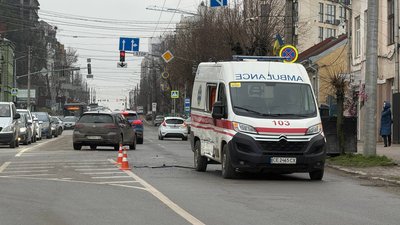 На перехресті вулиць Садової та Героїв Майдану у Чернівцях сталася аварія. Автомобіль зіткнувся з каретою швидкої допомоги, яка прямувала на виклик.