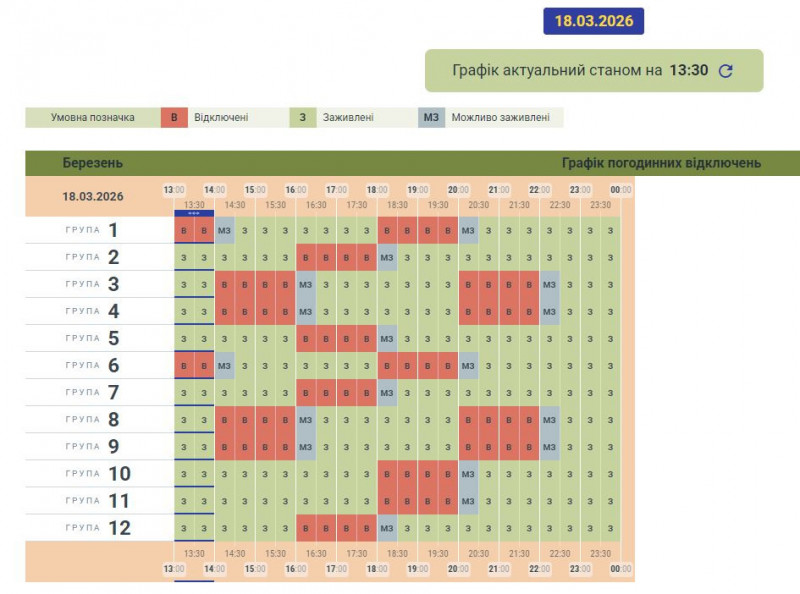 Графік може змінюватися залежно від оперативної ситуації в енергосистемі країни.