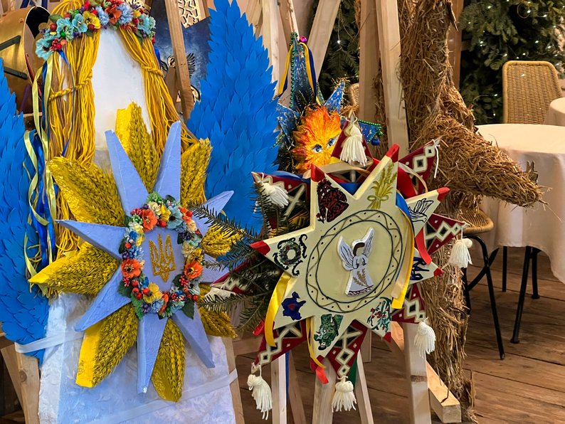 Новорічний декор закладу поблизу каруселі. Суспільне Чернівці