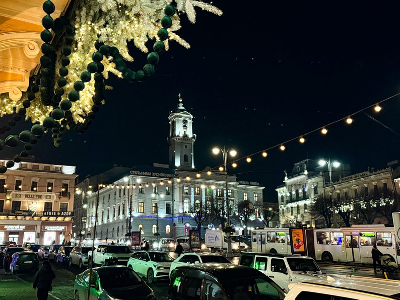 Міська рада на Центральній площі напередодні новорічних свят. Суспільне Чернівці
