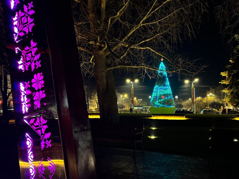 Прикраси ручної роботи та ілюмінація: у Новодністровську Чернівецької області встановили новорічну ялинку