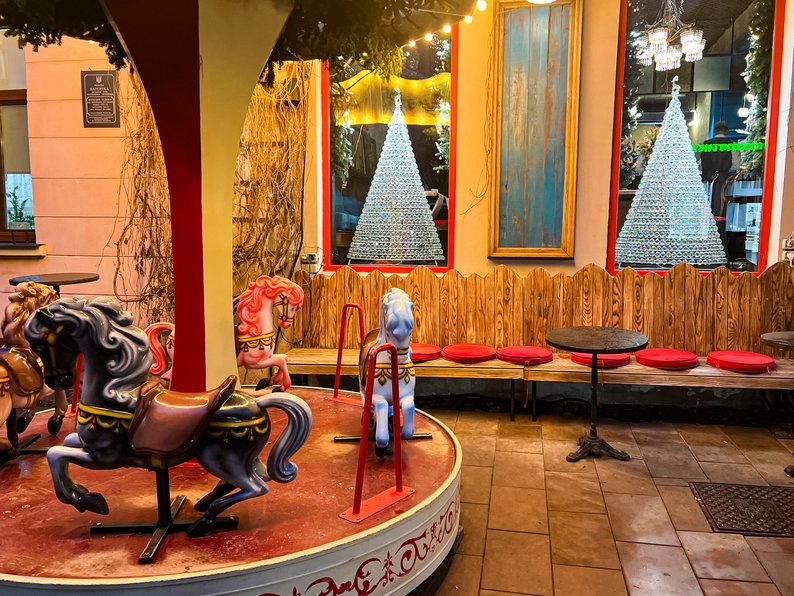 Біля одного із закладів встановили карусель із кониками. Вона – рухома.