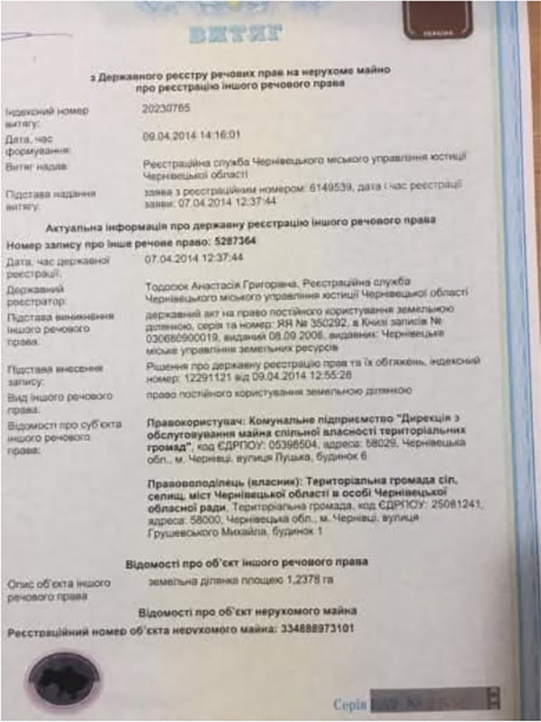 На фото: для того, щоб провести аферу з незаконною реєстрацією земель громад, Чернівецька обласна рада вигадала неіснуючу громаду області, від імені якої призначала себе власником комунальних ділянок. Державні реєстратори мінюсту і прокурори погоджувалися (і досі погоджуються) з цим беззаконням попри судові рішення, що вступили в силу.