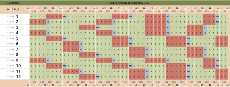 Графік погодинних відключень електрики на 16 листопада 2025 року у Чернівцях. АТ “Чернівціобленерго”