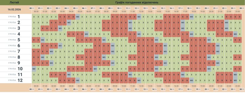 Графік відключення світла на 16 лютого. Чернівціобленерго