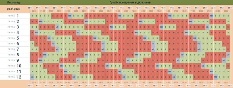 Графік погодинних відключень електрики на 20 листопада 2025 року. АТ “Чернівціобленерго”