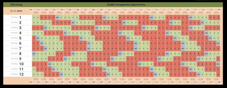 Графік погодинних відключень електрики на 21 листопада 2025 року. АТ “Чернівціобленерго”