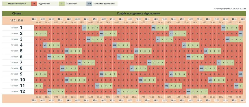 Графік відключення світла на 25 січня. Чернівціобленерго