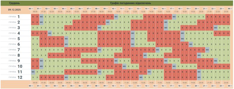 Графік відключення світла на 9 грудня 2025 року у Чернівцях та області. АТ “Чернівціобленерго”