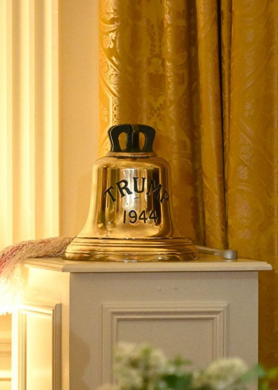 Дзвінок справді великий, на ньому є напис «Trump», а нижче написано «1944». Хоч цей подарунок, на перший погляд, є не настільки коштовним, як це любить Трамп, однак він має історичне значення.