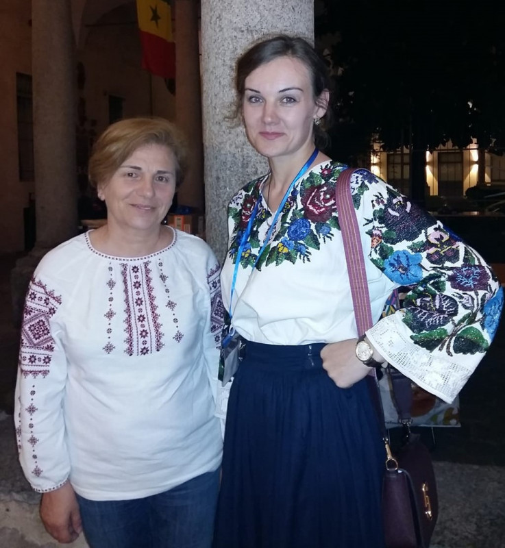Травень 2018 року. Галина Ганич з засновницею Дня вишиванки Лесею Воронюк у Мілані на фестивалі Mondo in casa (Світ у домі). Обидві в свій час закінчили історичний факультет ЧНУ