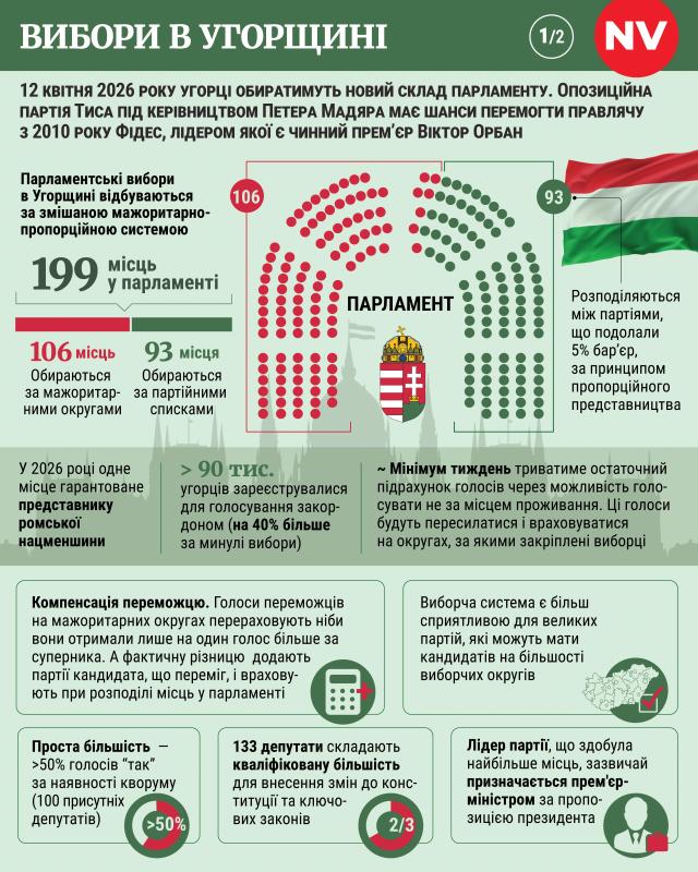 12 квітня в Угорщині відбулися парламентські вибори. За результатами підрахунку 98,94% голосів на виборах лідирує Тиса. Партія Петера Мадяра має отримати 138 місць у парламенті, Фідес Орбана — 55 місць, Наша батьківщина — 6.