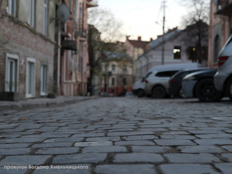 У завулку Богдана Хмельницького замінили дорожнє покриття — використали бруківку з міських запасів, демонтовану під час ремонту інших вулиць.