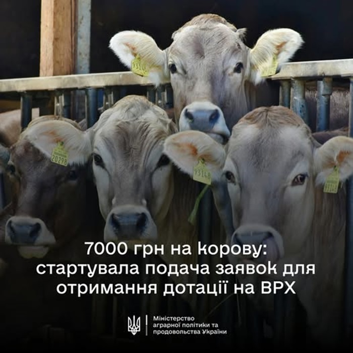 Спеціальна бюджетна дотація надаватиметься в розмірі 7 000 грн на голову – для тих, хто має у власності від 3 до 100 корів усіх напрямів продуктивності.