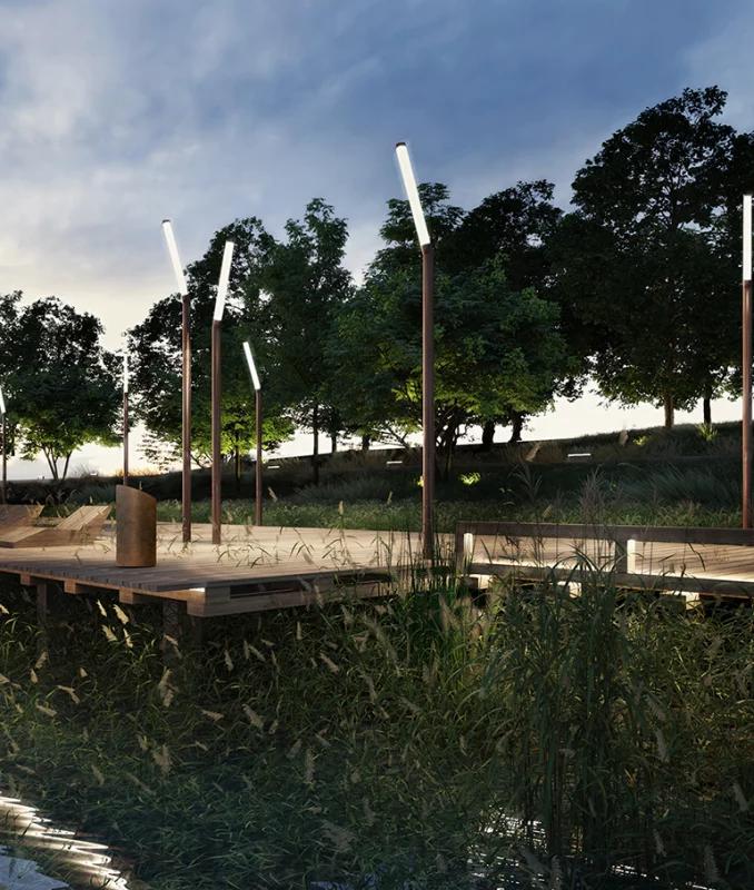 Навколо озера створять набережну, протяжністю 750 метрів із вело- та пішохідною доріжками. На набережній встановлять енергоощадне освітлення – 25 сучасних світильників, облаштують вуличними меблями – 25 парклетів, які обсадять кущами.